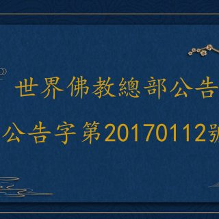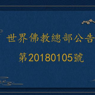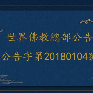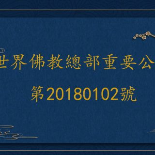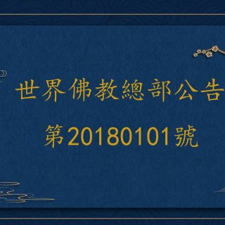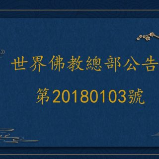 世界佛教總部公告 第20180103號 鑒於一直以來都...