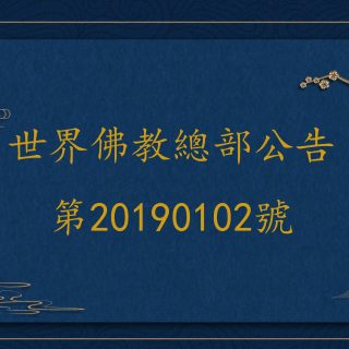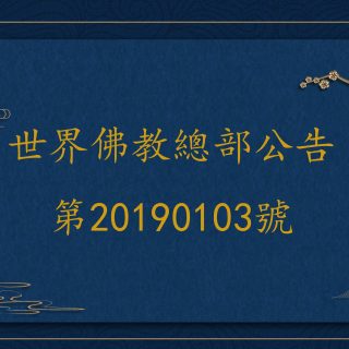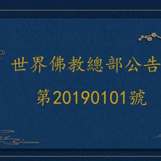 世界佛教總部公告 第20190103號 世界佛教總部於...