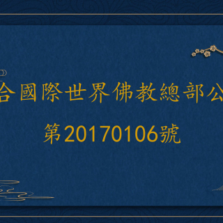 世界佛教總部公告 第20170110號 世界佛教總部接...